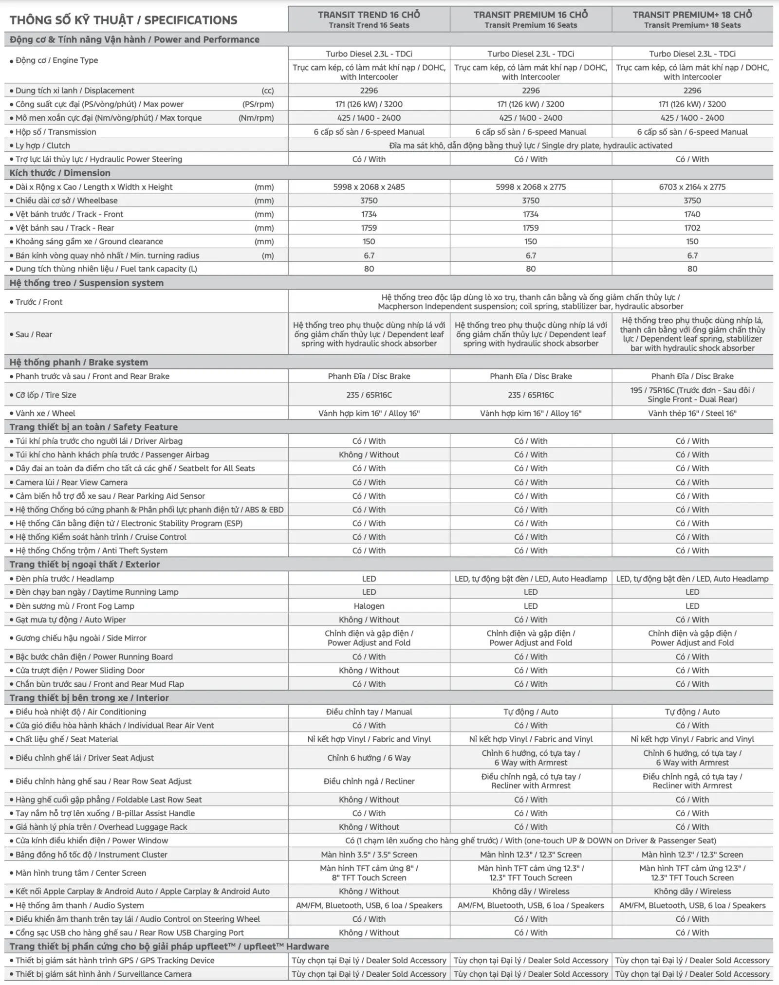 Ford Transit Thế Hệ Mới | Trend 16 Chỗ : 907,000,000